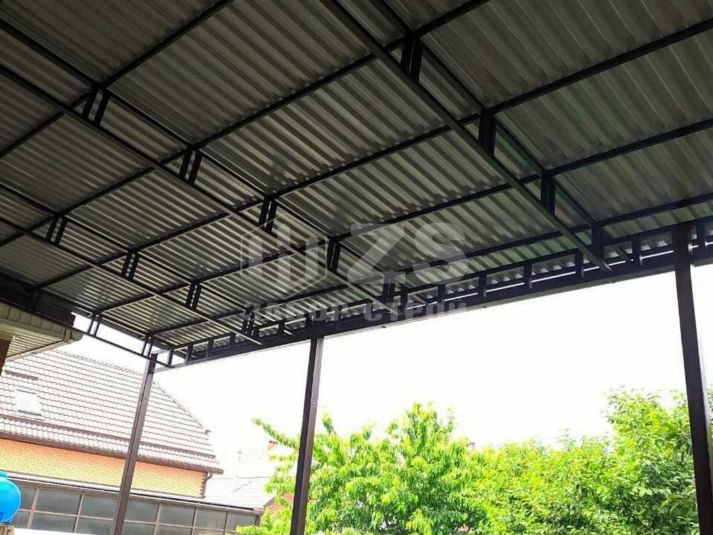 Стандартные характеристики каркаса навеса: столбы 80х80х3мм.