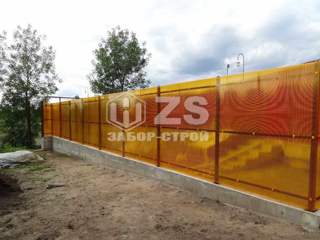 - Забор на ленточном фундаменте из поликарбоната 30 метров
