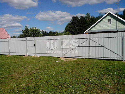 - Забор на столбах с утрамбовкой щебня из профнастила 40 метров