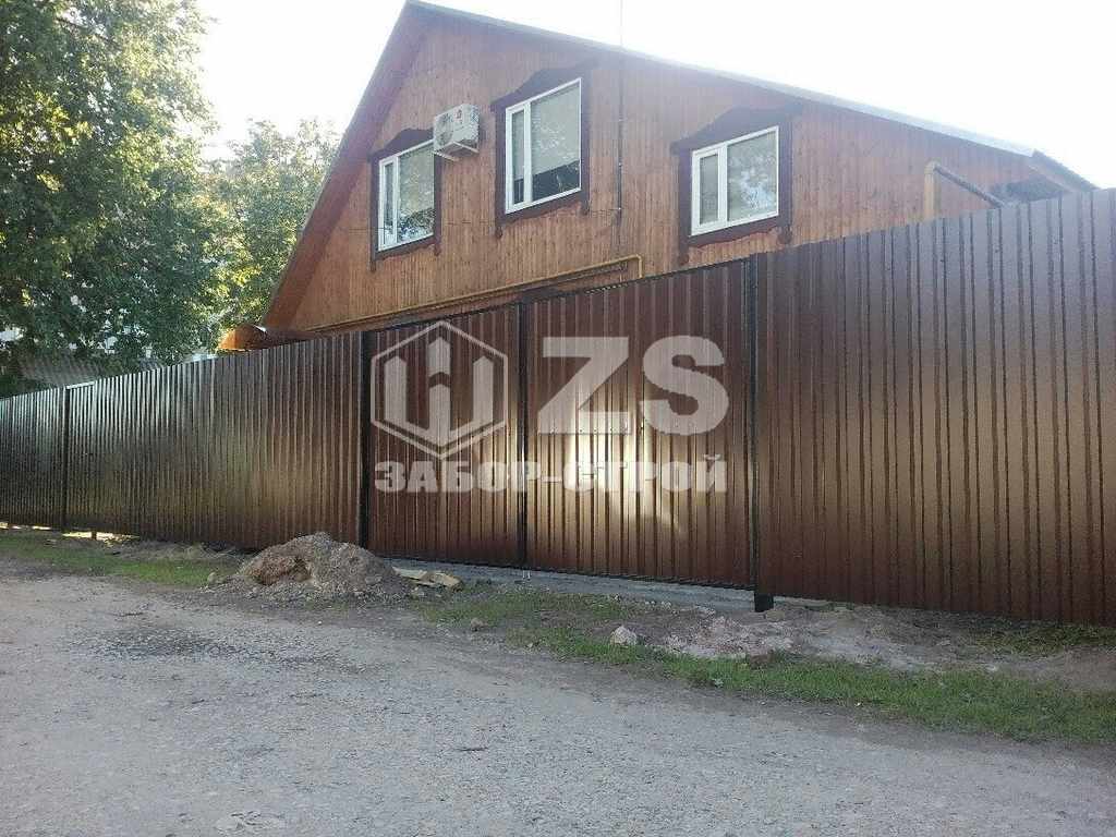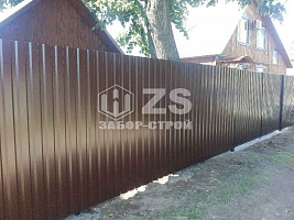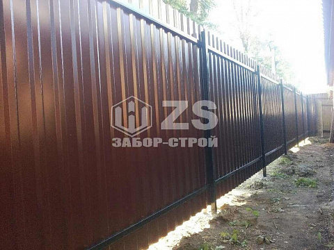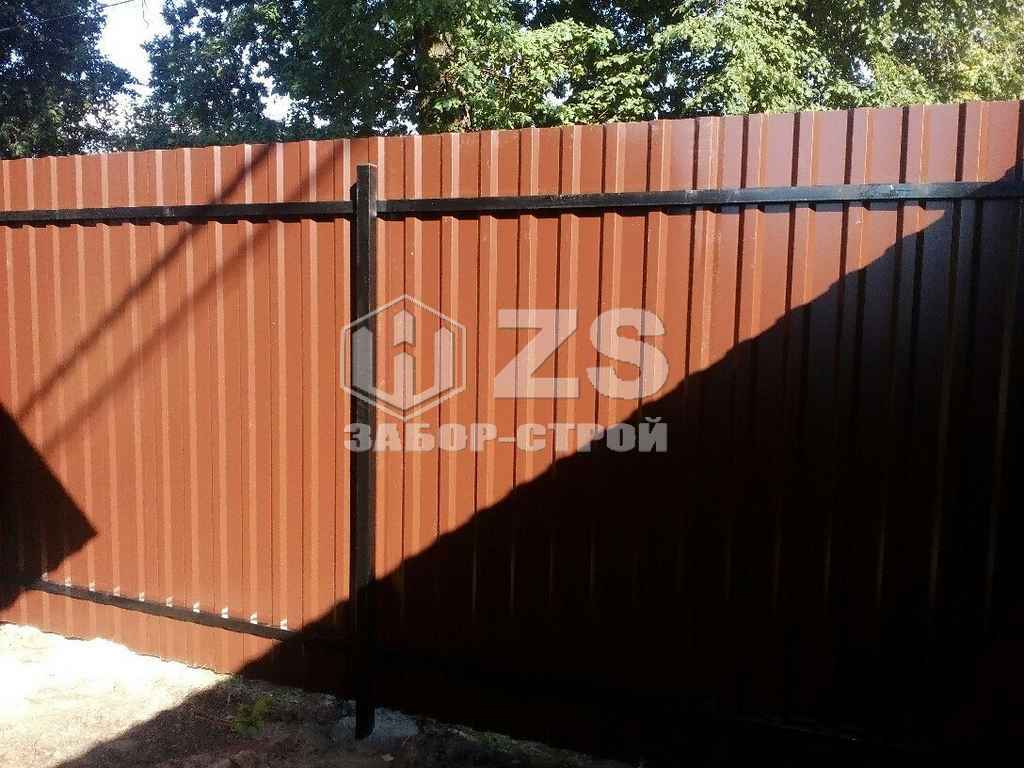 - Забор на столбах с утрамбовкой щебня из профнастила 55 метров