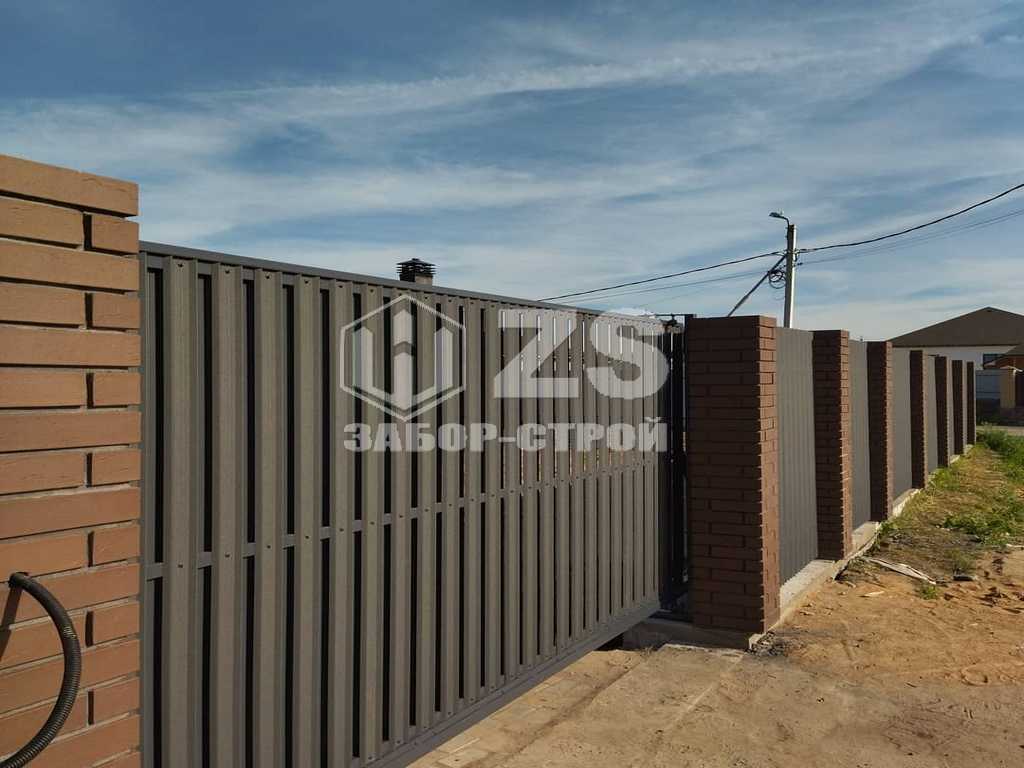 - Забор с кирпичными столбами из евроштакетника 45 метров