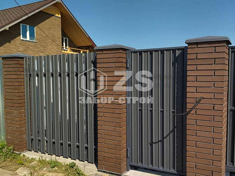 - Забор с кирпичными столбами